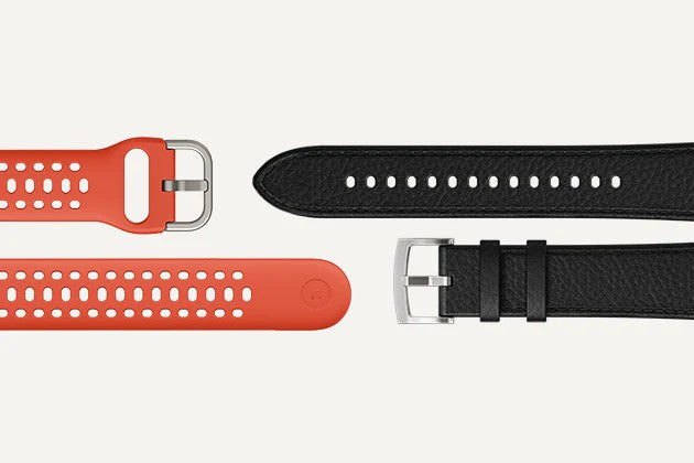 Cores: Black Leather – Versão Premium; Red Sport Silicone; Black Sport Silicone