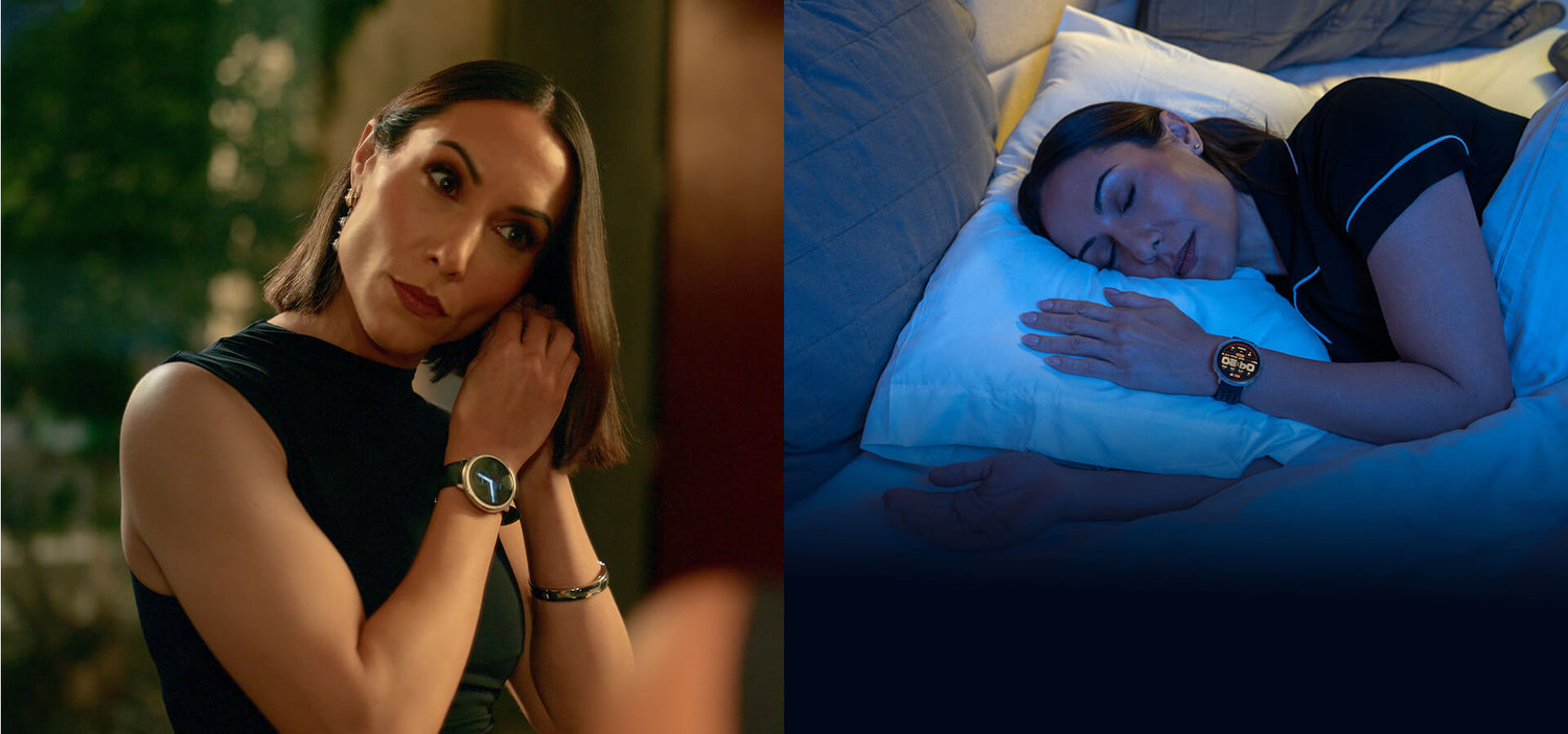 Monitore sua frequência cardíaca, estresse, oxigenação do sangue e taxa de respiração 24 horas por dia, 7 dias por semana, e receba alertas inteligentes¹⁰ para leituras fora do normal. -