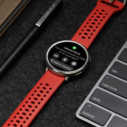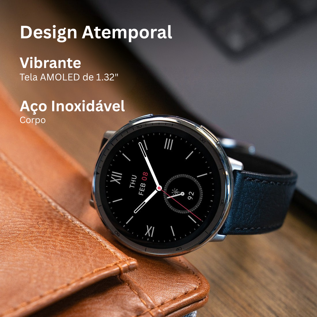 A versão premium acompanha gratuitamente uma pulseira esportiva vermelha de silicone, permitindo alternar com facilidade entre um visual esportivo e elegante.