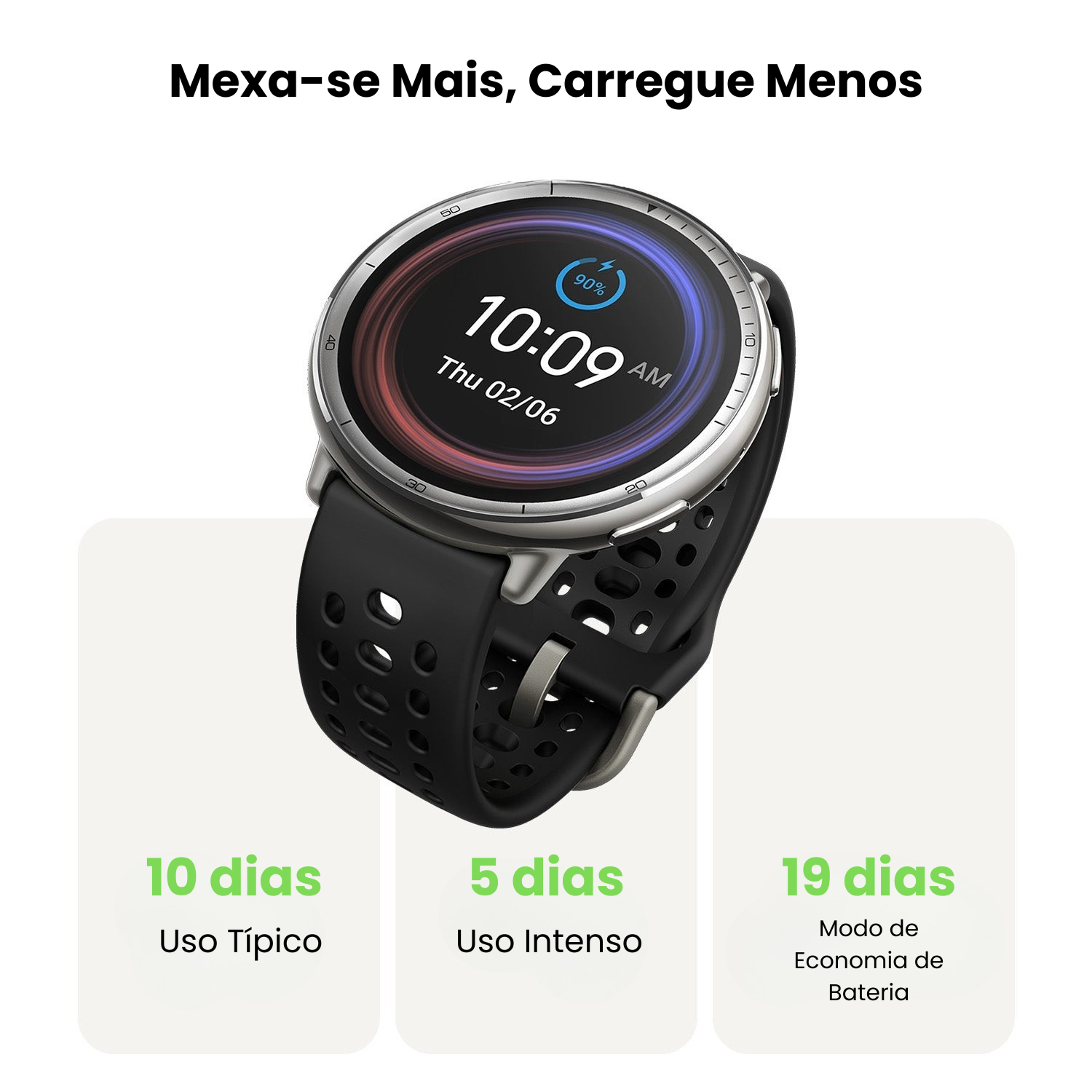Com uso típico regular, o Active 2 oferece cerca de 10 dias de bateria, enquanto o modo de economia de energia pode estender a autonomia para até 19 dias.